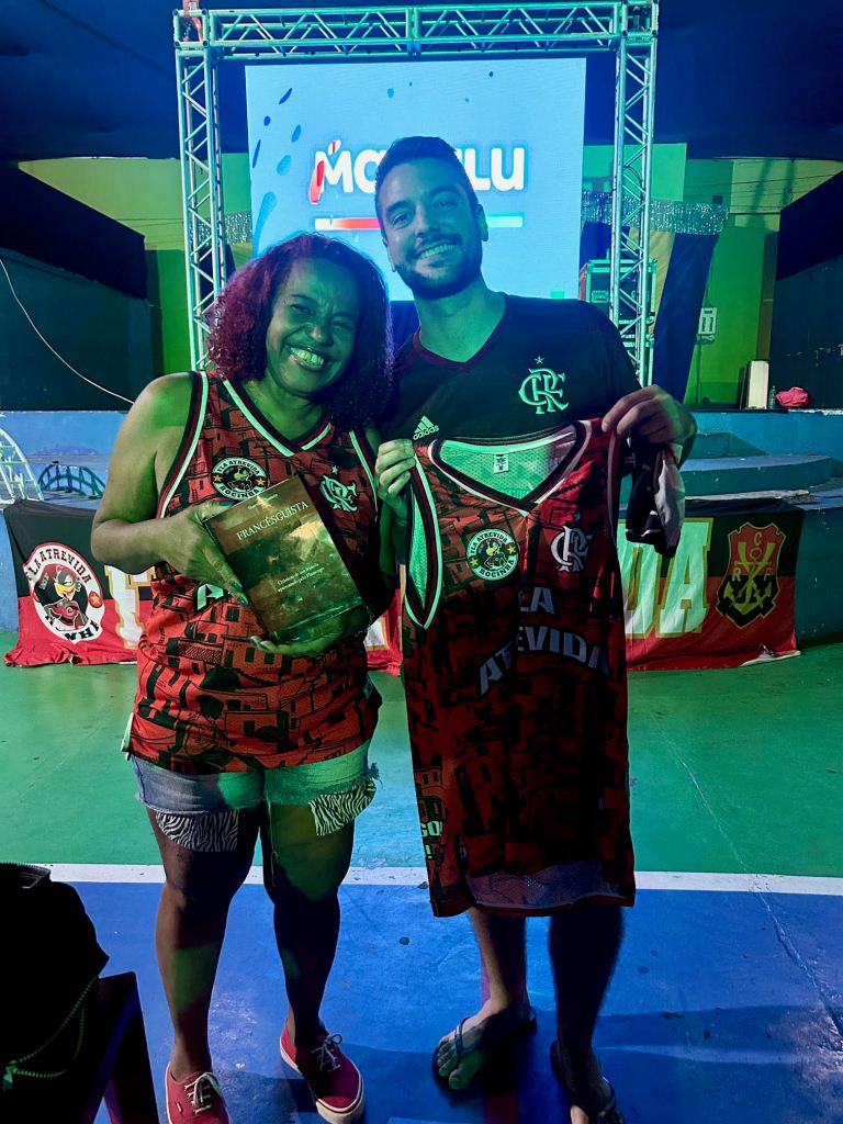 Na Rocinha, a comemoração foi até o apito final, até a efetivação do penta. Peguei a última cerveja, já com a ideia de voltar rapidamente na república onde estava hospedado. Lá, peguei meu livro Francêsguista, fiz uma dedicatória para Paula e a Fla Atrevida e voltei na quadra de samba. Ofereci o livro a Paula, que imediatamente caiu em lágrimas. Confesso que mesmo sabendo do lado emotivo dos brasileiros em geral e dela especificamente, fiquei surpreso. Apenas entendi depois. Ela me ofereceu em troca a camisa da Fla Atrevida e teve uma última foto, com sorriso sincero, olhos úmidos e coração cheio. Paula me convidou para a festa dos 3 anos da Fla Atrevida quatro dias depois, mas meu voo para a França estava marcado antes. Nós nos despedimos ali, com uma alegria que apenas Flamengo pode proporcionar.